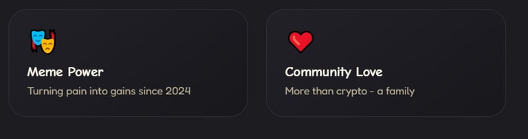 We are healers through humor. Established with a vision to blend memes with well-being, our mission is to turn your struggles into laughter. Every transaction is a step towards healing, making your experience with us both enjoyable and meaningful. Join us in spreading joy and transforming pain into laughter. Each individual is unique, and so is their path to healing. Our community is more than just crypto enthusiasts; we are a family, passionately working to create a space where creativity and connection flourish. Dive into the world of Painless Coin, where humor and healing unite.